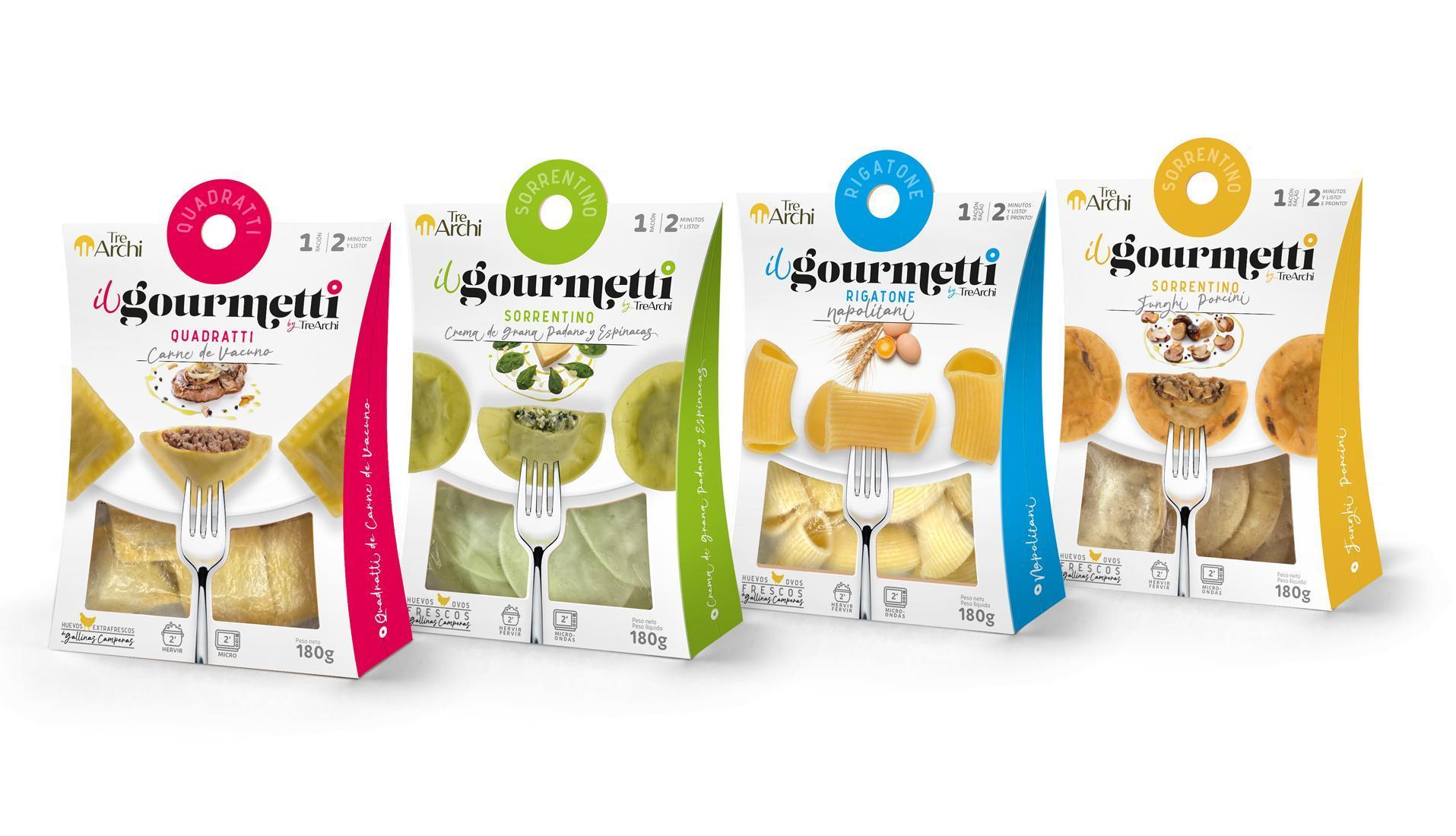 Tre Archi, referente en pasta fresca congelada dentro del canal HORECA, dio un paso decisivo hacia el retail con Il Gourmetti, una nueva marca creada para abrir una categoría inédita en el lineal de congelados. Nuestro papel consistió en desarrollar un packaging innovador, funcional y diferencial, capaz de comunicar calidad, autenticidad y frescura en un segmento donde la competencia visual es intensa. El resultado fue un envase automontable de cinco caras, con troquel superior para aumentar la visibilidad, doble ventana frontal que muestra el producto real y una cuidada composición gráfica que resalta la naturalidad de la pasta, sin salsas ni artificios. Este proyecto ha sido galardonado en la XII edición de los Premios Internacionales CLAP, en la categoría Branding & Packaging – Mejor envase o conjunto de envases.